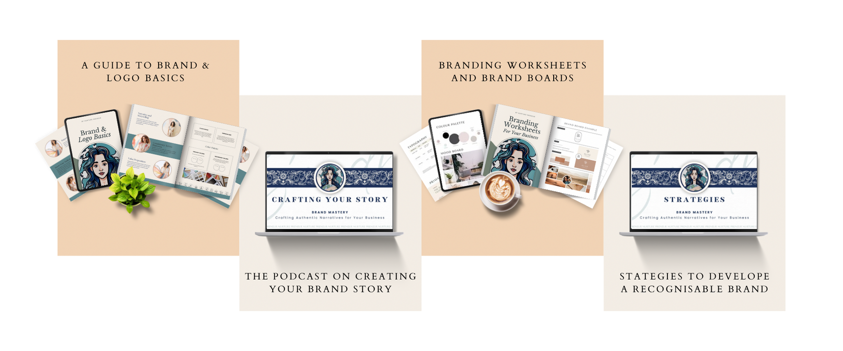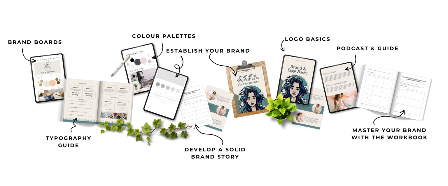 A 20 min podcast on brand strategy, the guide, workbook and Canva brand templates.